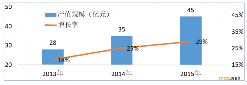 1  2013-2015年中國新風(fēng)系統(tǒng)產(chǎn)值規(guī)模及增長