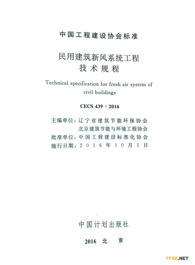 《民用建筑新風系統(tǒng)工程技術(shù)規(guī)程》