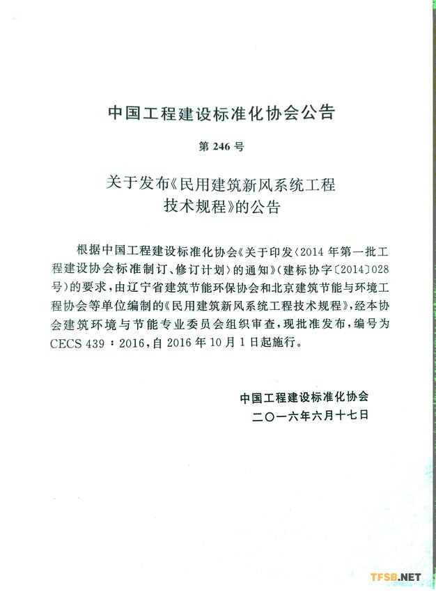 《民用建筑新風系統(tǒng)工程技術(shù)規(guī)程》適用于民用建筑中新風系統(tǒng)的設(shè)計、施工、安裝驗收及維護管理。該標準由遼寧省建筑節(jié)能環(huán)保協(xié)會和北京建筑節(jié)能與環(huán)境工程協(xié)會聯(lián)合主編。技術(shù)歸口單位為中國建筑科學(xué)研究院。