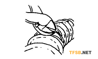 用一把鋒利的刀切斷兩個相鄰加強(qiáng)螺旋間的軟管材料
