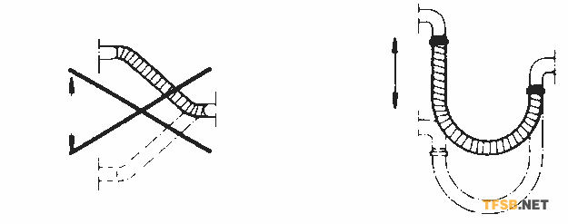 運(yùn)動方向和軟管軸線必須位于同一平面上,以防止發(fā)生軟管扭結(jié)。
