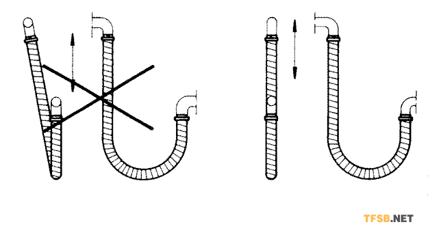 安裝時需對軟管進(jìn)行180度彎曲以使管子兩端可以有足夠長度的直管。請根據(jù)需要的彎曲半徑確定管子的長度。
