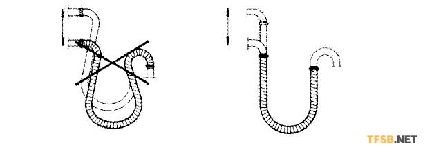 安裝時應(yīng)使軟管自由彎曲并且須保證在工作過程中不與地面、墻面或者其他物體觸碰而損壞。