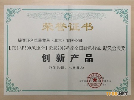 美國TSI公司很榮幸地宣布,AirPro ® 風速計 AP500在2017全國新風行業(yè)創(chuàng)新發(fā)展年會上,榮獲由中國設(shè)備管理協(xié)會建筑新風系統(tǒng)技術(shù)服務(wù)管理中心評選出的2017年度全國新風行業(yè)創(chuàng)新產(chǎn)品獎。