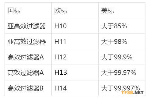 HEPA過(guò)濾網(wǎng)等級(jí)