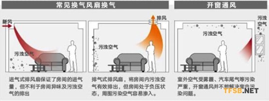 排氣扇是通過風(fēng)扇將房間內(nèi)的空氣排出,由于房間內(nèi)空氣變少,就會通過關(guān)閉的門窗風(fēng)滲透進(jìn)房間進(jìn)行補充,會一定程度的加強室內(nèi)換氣,但在補充室外空氣的同時也會把室外的污染 (例如PM2.5,汽車尾氣等)帶入室內(nèi)。