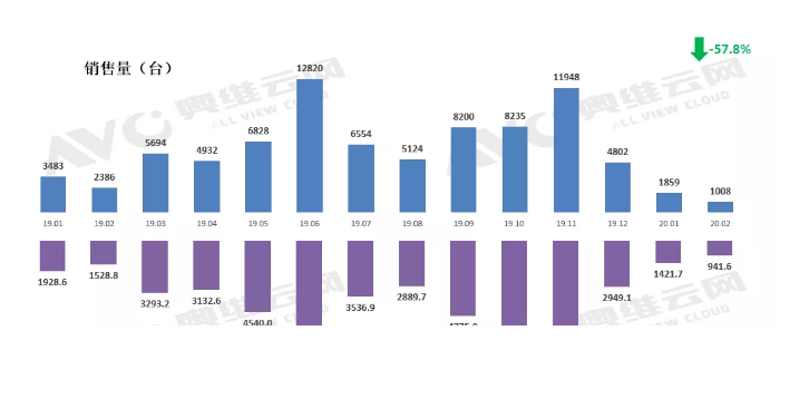 據(jù)奧維云網(wǎng) (AVC)數(shù)據(jù)監(jiān)測,2月份16000元以上高價位機型與2019年2月相比銷售熱度明顯增高,兩部分合計占據(jù)總銷量的26%,小于12000元的中低價位產(chǎn)品銷量降幅超過30%??梢钥闯?,新風產(chǎn)品因為良好的除菌通風換氣功能逐漸受到了企業(yè)的認可,但同時在疫情期間,所有價格段產(chǎn)品銷量連續(xù)3個月下滑。
