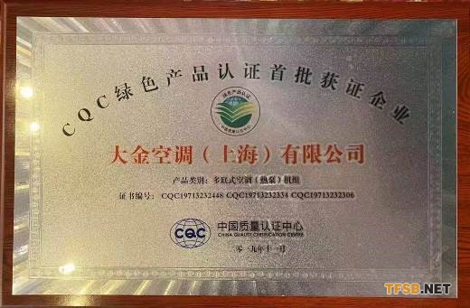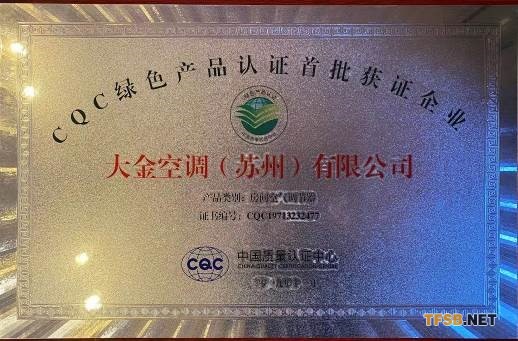 18項產(chǎn)品獲綠色產(chǎn)品認證,大金空調(diào)成為中國質(zhì)量認證中心“綠色產(chǎn)品首批獲證企業(yè)”