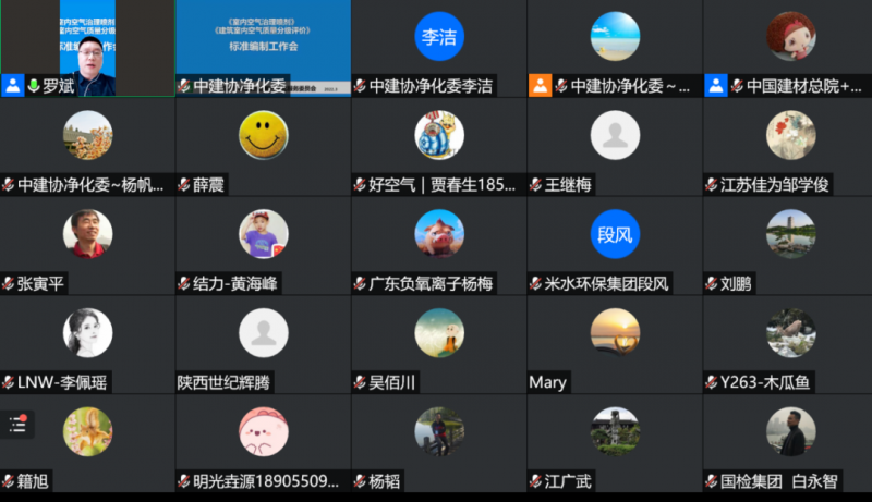 為了繼續(xù)推動建筑空氣質量健康升級與產品技術的完善及更新, 帶動行業(yè)良性可持續(xù)的發(fā)展,中國建筑材料流通協會室內凈化服務委員會(以下簡稱:中建協凈化委)2021年11月17日在京組織召開《建筑室內空氣質量分級評價》和《室內空氣治理噴劑》兩個標準的第一次標準啟動會,于2022年3月9日,再次以騰訊會議的方式組織召開了本次標準的第二次工作會議。