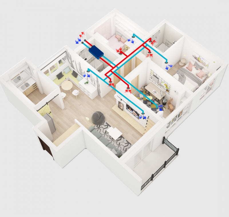 目前最常見的新風系統(tǒng)是帶有全熱交換的雙向流新風系統(tǒng),通過主機、新風管道、新風控制器以及新風口的安裝,實現(xiàn)房間不開窗就能換氣的功能。新風系統(tǒng)主要的作用有:不開窗也能享受大自然的新鮮空氣,避免“空調(diào)病”,避免室內(nèi)家具、衣物發(fā)霉,排出室內(nèi)裝修后長期釋放的有害氣體(甲醛、苯等),排出生活中產(chǎn)生的有害氣體(抽煙煙味、油煙等),排出室內(nèi)各種細菌、病毒、灰塵等,阻擋室外花粉等過敏源的進入, 降低室內(nèi)二氧化碳濃度,增加室內(nèi)含氧量,隔音降噪,防塵,回收室內(nèi)溫濕度,節(jié)省空調(diào)和地暖費用等。