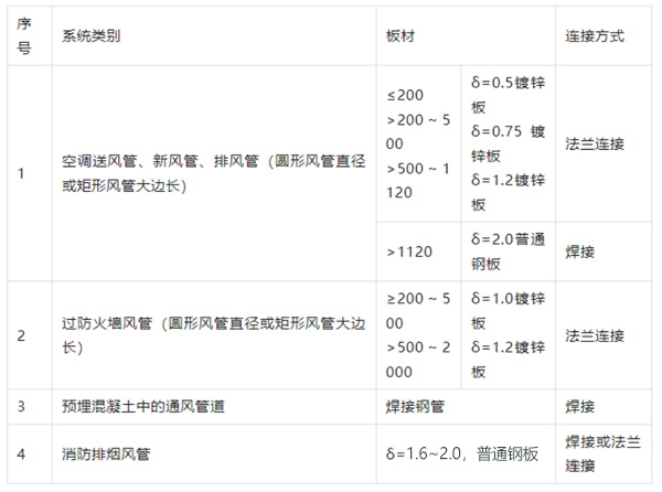 1 常用風(fēng)管材質(zhì)及連接