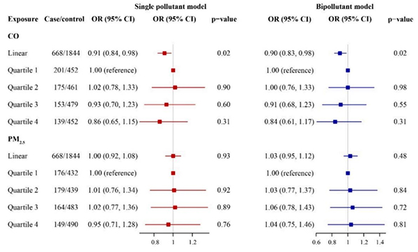 ▲圖2 CO和PM2.5與貧血之間的關(guān)聯(lián)