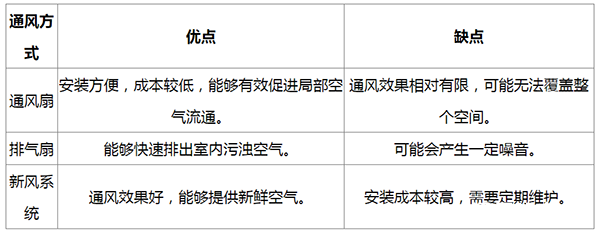 下面用一個表格來對比一下不同通風方式的優(yōu)缺點: