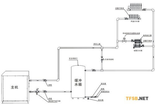1、老系統(tǒng)中由于客戶忘記關(guān)閉地暖分水器的閥門,使得制冷時(shí)冷凍水進(jìn)入地暖系統(tǒng),導(dǎo)致地板結(jié)露,為此新系統(tǒng)圖在地暖分水器前增加了防地板制冷結(jié)露電動(dòng)閥,同時(shí)熱泵控制軟件也做了相應(yīng)的升級,當(dāng)熱泵轉(zhuǎn)為制冷模式,自動(dòng)關(guān)閉地暖分水器前的電動(dòng)閥,杜絕了制冷時(shí)冷凍水因錯(cuò)誤使用進(jìn)入地暖管的可能,同時(shí)杜絕了制冷時(shí)地板結(jié)露的可能。