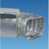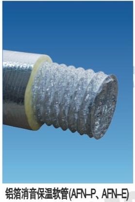 鋁箔消音保溫軟管,內(nèi)管為消音鋁箔管,以鋼絲支撐,中間是25毫米厚保溫棉,外衣為玻釬布