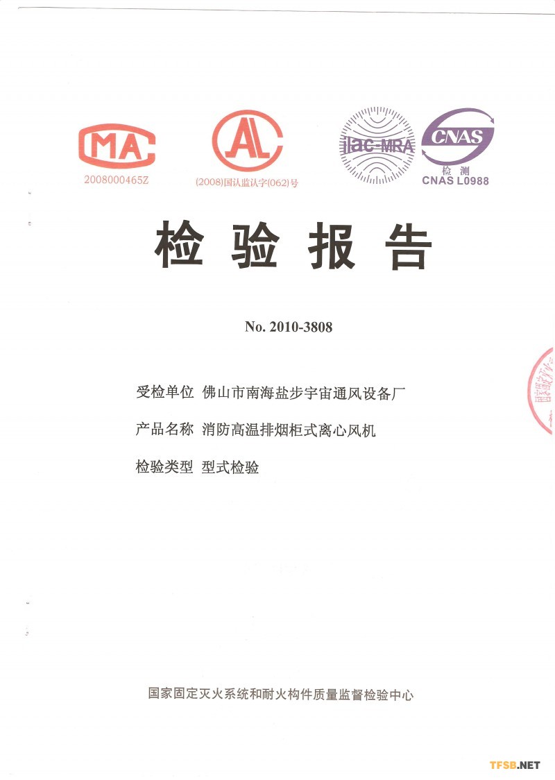 消防高溫排煙柜式離心風機檢驗報告