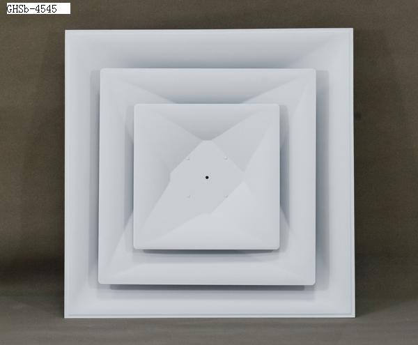 方形散流器具有良好的散流特性和美觀的外形。廣泛應(yīng)用于空調(diào)系統(tǒng)中作送風(fēng)口,其結(jié)構(gòu)形式有多樣,有1-4個(gè)不同方向散流的形式,能滿足所有類型天花板的要求。散流器外框和內(nèi)芯可分離,拆裝容易,便于調(diào)節(jié)風(fēng)量。根據(jù)使用要求,散流器后端可配置風(fēng)量調(diào)節(jié)閥(OBD)。