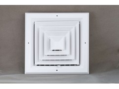 方形散流器具有良好的散流特性和美觀的外形。廣泛應(yīng)用于空調(diào)系統(tǒng)中作送風(fēng)口,其結(jié)構(gòu)形式有多樣,有1-4個(gè)不同方向散流的形式,能滿足所有類型天花板的要求。散流器外框和內(nèi)芯可分離,拆裝容易,便于調(diào)節(jié)風(fēng)量。根據(jù)使用要求,散流器后端可配置風(fēng)量調(diào)節(jié)閥(OBD)。