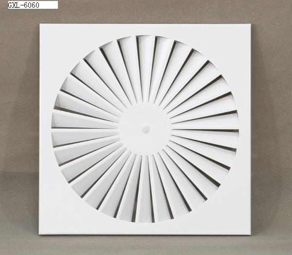 方形散流器具有良好的散流特性和美觀的外形。廣泛應(yīng)用于空調(diào)系統(tǒng)中作送風(fēng)口,其結(jié)構(gòu)形式有多樣,有1-4個不同方向散流的形式,能滿足所有類型天花板的要求。散流器外框和內(nèi)芯可分離,拆裝容易,便于調(diào)節(jié)風(fēng)量。根據(jù)使用要求,散流器后端可配置風(fēng)量調(diào)節(jié)閥(OBD)。