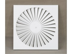 方形散流器具有良好的散流特性和美觀的外形。廣泛應(yīng)用于空調(diào)系統(tǒng)中作送風(fēng)口,其結(jié)構(gòu)形式有多樣,有1-4個(gè)不同方向散流的形式,能滿足所有類型天花板的要求。散流器外框和內(nèi)芯可分離,拆裝容易,便于調(diào)節(jié)風(fēng)量。根據(jù)使用要求,散流器后端可配置風(fēng)量調(diào)節(jié)閥(OBD)。