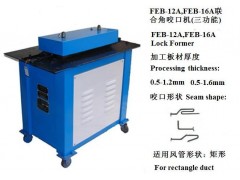 FEB-16A聯(lián)合角咬口機是上海金虹十幾年行業(yè)經(jīng)驗的結(jié)晶,性能卓越,價廉物美.我們的產(chǎn)品保修一年.配合牛頭剪板機,手動折邊機使用,是風管現(xiàn)場安裝和制作的好幫手.