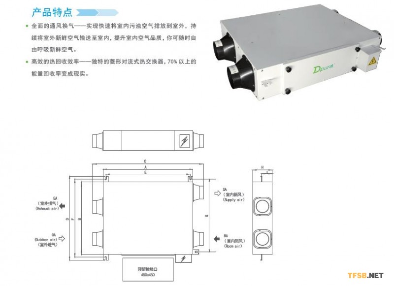 高效的熱回收效率——獨特的菱形對流式熱交換器,70% 以上的