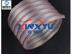 半透明PU管壁, 帶鍍銅色包塑鋼絲螺旋加強(qiáng) |
