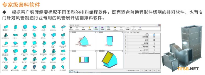 數(shù)控風(fēng)管下料機(jī)-通風(fēng)管道等離子切割機(jī)設(shè)備應(yīng)用行業(yè)范圍: 各種通風(fēng)管道彎頭切割加工(配合專用的風(fēng)管選型與編程軟件,輕松實(shí)現(xiàn)風(fēng)管切割加工),各種薄板金屬制品的切割加工(如:不銹鋼廚具、炊具、風(fēng)機(jī)葉片切割機(jī)、風(fēng)機(jī)制造),廣泛應(yīng)用于各個(gè)行業(yè)的金屬薄板切割加工。