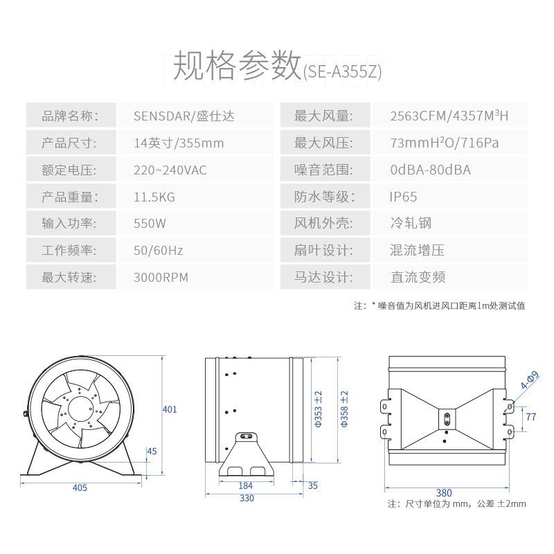 盛仕達SE-A355Z直流變頻管道風機