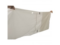 阻燃纖維織物布風管材料采用B級阻燃纖維,具有良好的抗靜電性能,布風管本身光潔,有良好的物理性能,也不含甲醛等有害物質;布風管材料由特殊纖維織成,重量較輕,適合吊掛使用。