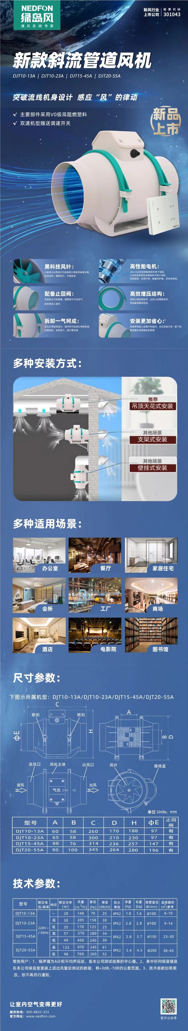 綠島風(fēng)斜流管道風(fēng)機(jī) DJT10-13A/DJT10-23A/DJT15-45A/DJT20-55A