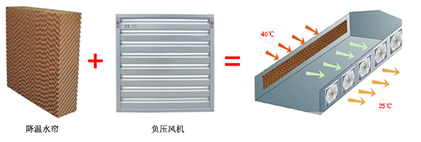 水蒸發(fā)吸熱是自然界的一種很普遍的物理現(xiàn)象,降溫水簾降溫同樣運(yùn)用了這一原理,濕簾式降溫系統(tǒng)與負(fù)壓風(fēng)機(jī)的綜合運(yùn)用正是利用了水蒸發(fā)吸熱而使空氣冷卻的熱學(xué)原理,充分展示了水蒸發(fā)吸熱原理的三大要素: